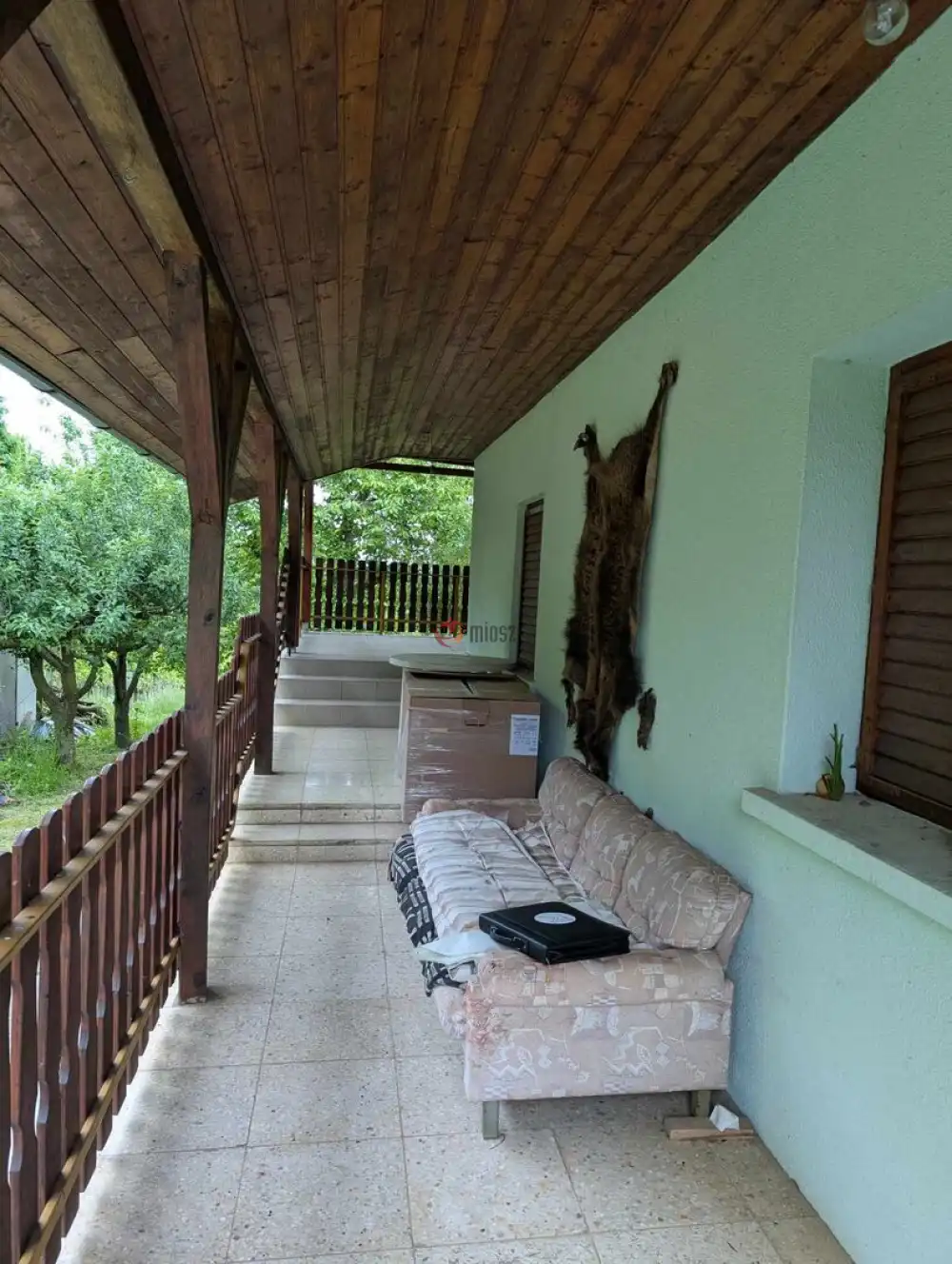 Az épület kialakítása: lakószint mely 45 m2-es itt 2 szoba és egy konyha található ezen kívül egy 27 m2-es fedett terasz, 8 m2-es tároló valamint egy 34 m2-es pince található.