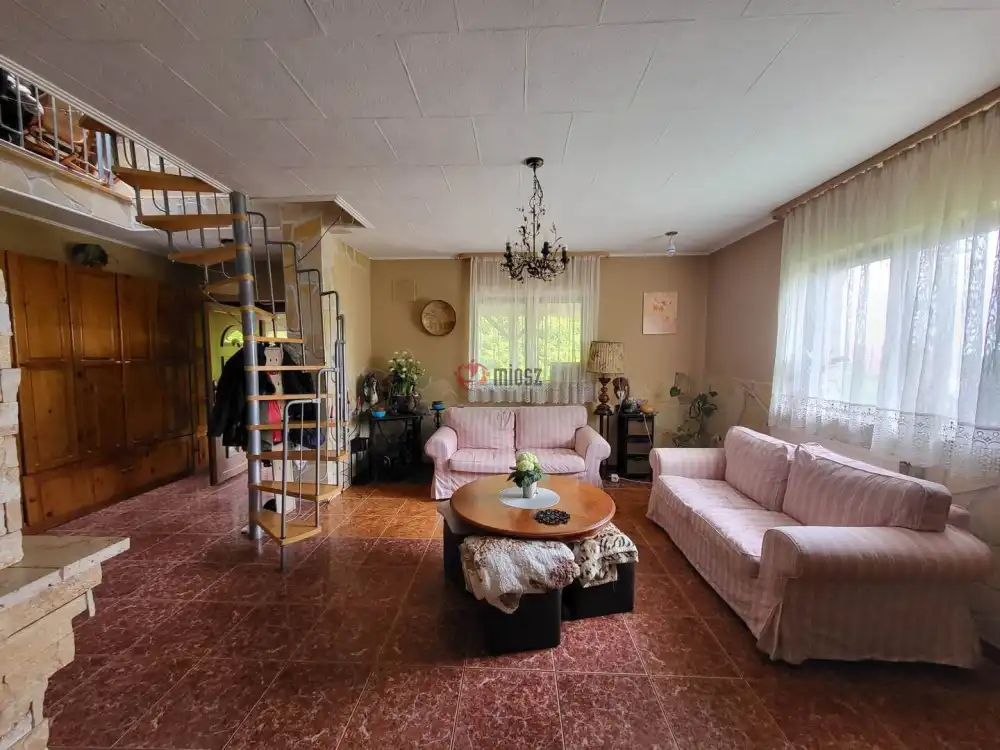Az ingatlanban 4 szoba található a földszinten: terasz, nappali, 2 szoba, étkező-konyha, kamra, fürdő, wc az emeleten 2 szoba, nappali, fürdő+wc és egy erkély található.